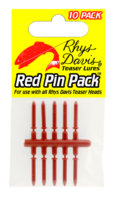 10 Red and/or Glow Replacement Pins for Rhys Davis Anchovy Special, Bulletroll, Large Teaser and Super Herring Bait Heads.